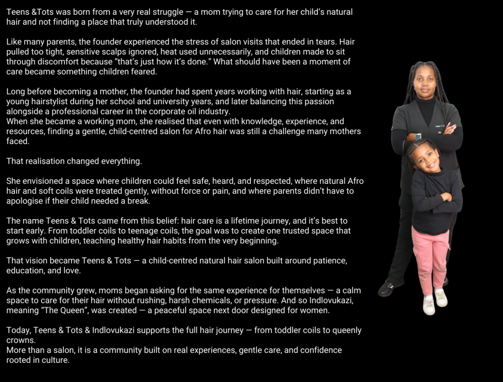 At Teens & Tots & Indlovukazi, families choose us because we put comfort, care and culture first