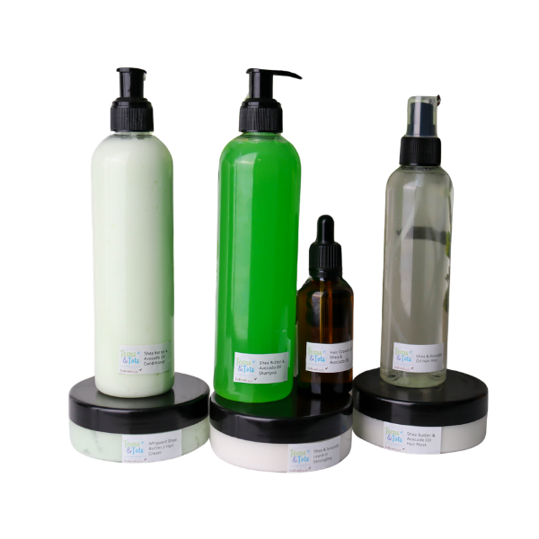 This combo consists of Shea Butter & Avocado Oil Conditioner, Shea Butter & Avocado Oil Shampoo, Hair Growth Shea & Avocado Oil, Whipped Shea Butter Hair Cream, Shea & Avocado Leave-in Detangling and Shea Butter & Avocado Oil Hair Mask